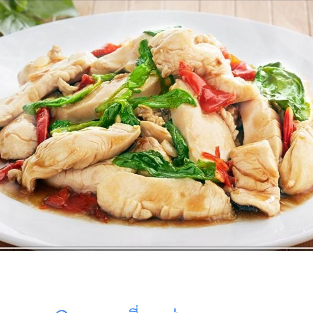 Emincé de poulet sauté au wok avec des feuilles de basilic thai
