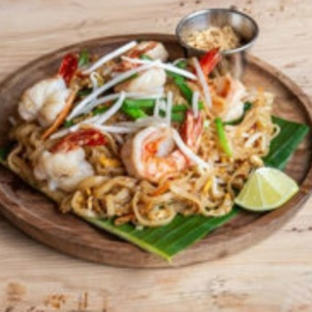 Pâte de riz sauté au wok aveclégumes et crevettes/poulet/bœuf cacahuètes