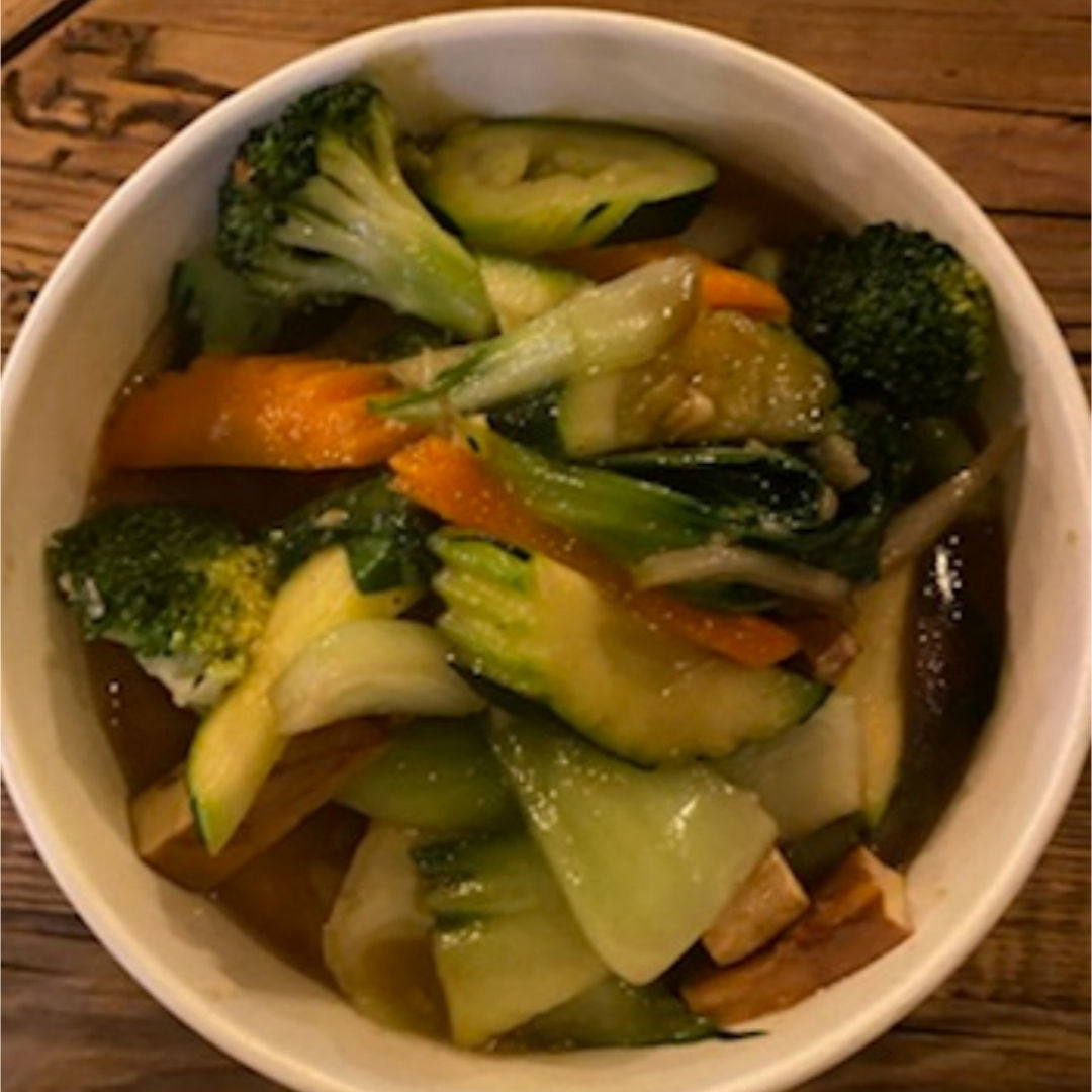 Légumes croquants et tofu frit et fumé,sauté au wok
