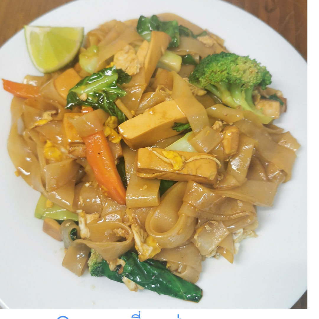 Pâtes de riz sautées au wok aux doux légumes croquants et tofu et fumé