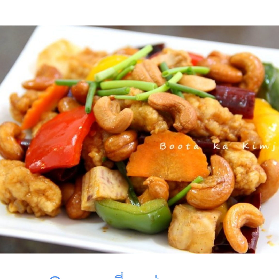 Émincé de poulet sauté aux noix de cajou.