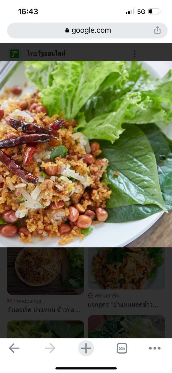 Salade de riz croustillant au porc fermenté servi avec des légumes et cacahuètes